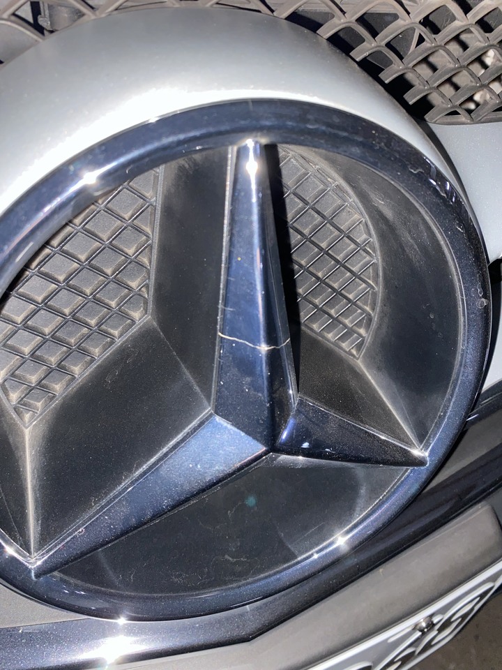 突然發現水箱罩平標裂開,也沒有撞擊痕跡,怎麼會裂開呢?2015 E250 AMG