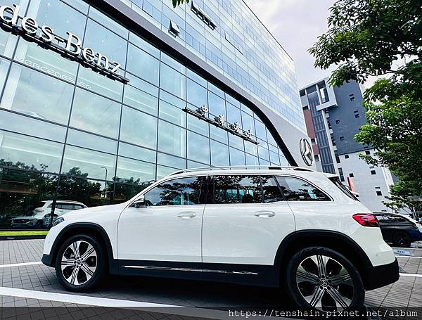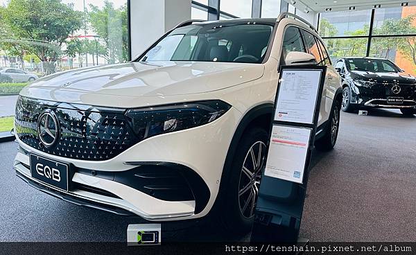 中華賓士內湖旗艦店 2F 除了有休息區外,也有展示區,這款 EQB 300 電動車正是我們今天試駕的車款,只是配備稍有不同,因為此次深度試駕的車型是 EQB 250 。