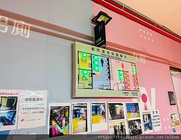 最酷的是 B1 的廁所外面,竟然有"使用狀態"顯示燈,一眼就可以看出哪間廁所有沒有人?也太先進了吧!