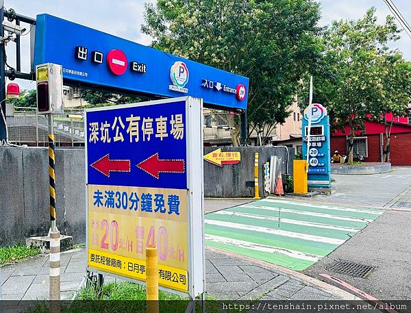 做為一個聞名全台的景點,深坑老街的停車場當然不缺,但是大多是計次停車,每次 100 元。對於短時間停留的我們顯然並不划算,還好就在老街入口的斜對面,就有一個"兒童遊戲場停車場",平日 20元/時,假日 40元/時,而且未滿 30 分鐘免費。