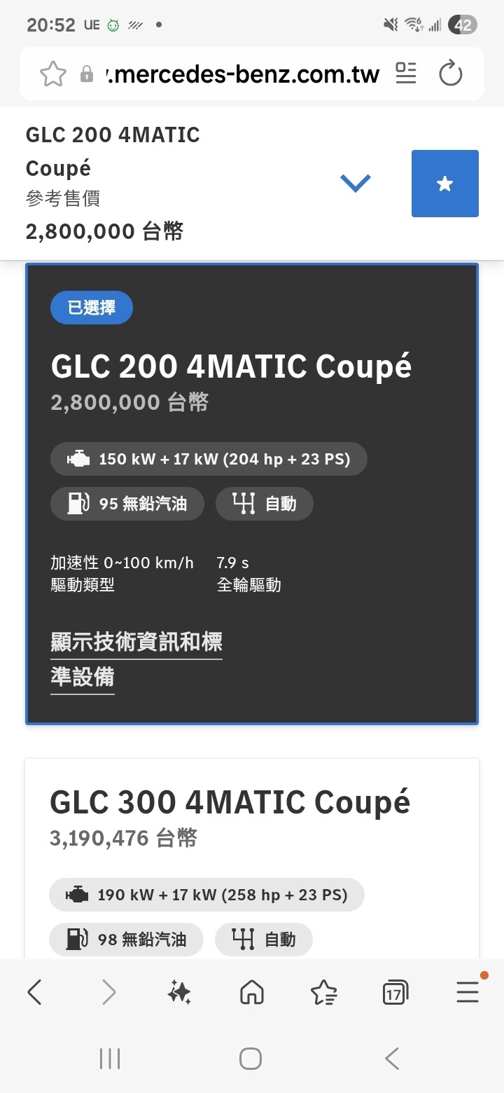 GLC 300 4MATIC Coupé牌價下調至 319萬,是我看錯還是???