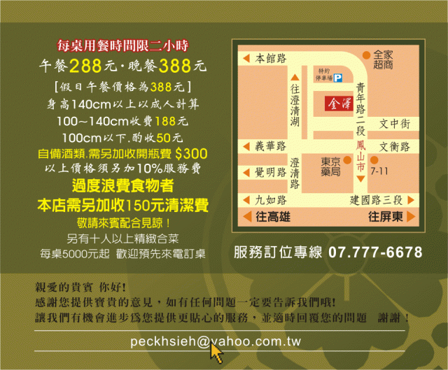 ps.由於網路上不便公佈行動,因此煩請向阿牛詢問本人電話