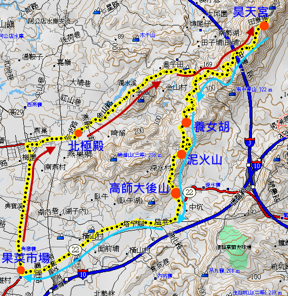 燕巢-->中寮山-->昊天宮休息-->下中寮山-->轉切新養女湖-->高師大後山