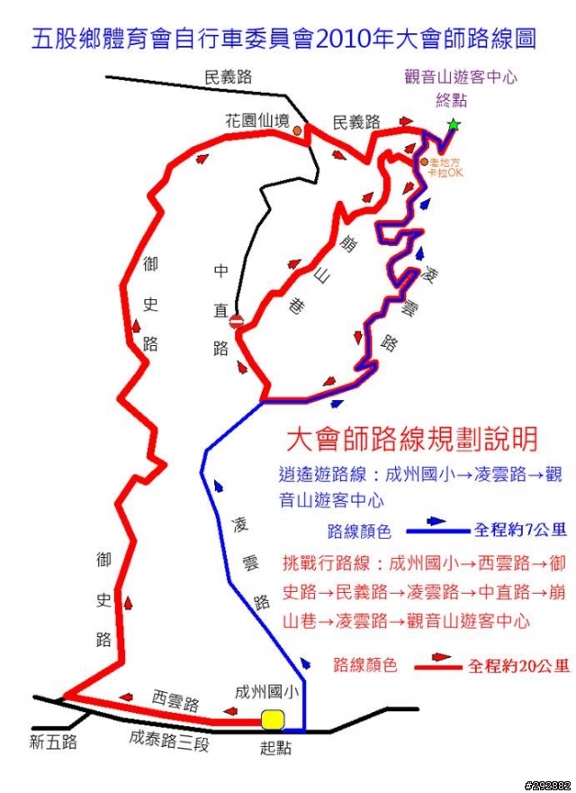挑戰行路線:成州國小-西雲路-御史路-民義路-凌雲路-中直路-崩山巷-凌雲路-遊客中心(終點)-約20公里