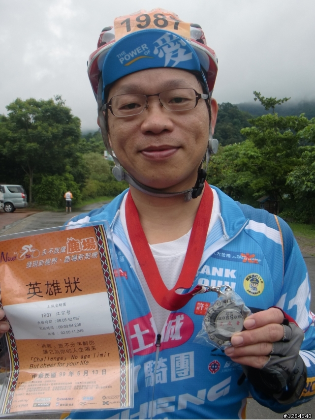 01.快到仙山之前雨忽然停了,轉個彎看到這景色後拍下今天第一張相片...02.第一補給站跟工作人員妹妹合照03.滑完長下坡騎一段路後又要開始爬坡,停下來等麥可一起爬.(麥可跟阿南)04.等人的過程拍了幾位單車美媚...05.照片中有一個停車場的出口,等人的過程中竟然看到十幾台自行車從裡面騎出來!!!(安全帽上有貼號碼牌)06.連拍三位單車美媚忽然想起豚叔說過的話,騎公路車的女生線條真是美阿...07.這位爸爸真是猛騎協力車來挑戰鹿場,不管有沒有完賽你都是最強的啦!!!08.等了半天終於來了一個認識的,慶仔!!!之後跟麥可也上路了.09.第二補給站進雨棚躲雨順便跟工作人員妹妹合照...在這個補給站也混了很久(等雨停)10.等了半天雨沒停到是等到了阿彥,他是阿霖的弟弟阿紘的哥哥...11.登科也到了...12.在第一個很陡的坡那邊跟麥可討論,這麼多人牽車我們龜到終點應該超車100人沒問題.(最後應該超過200人以上有哈哈!!好爽的感覺!)13.跟單車美型女22號Ruby合照...14.跟阿團合照...15.型男小羅16.紅蜻蜓的兩位車友17.阿和18.合照19.1996號你是沒臉見人喔...20.Ya!!!完賽...21.Ya!下次不要再來了...這麼大的雨真是難忘了!!!22.參加這麼多次比賽這次的香蕉品質最好最好吃!!!不過麥可你也不用吃這麼多吧??????
