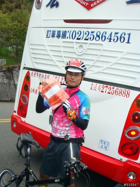 我的自行車補給車,只有捕到在旁加油,照相的美妹,我看他們站太久了,腳應該也快抽筋了所以趕快遞上香蕉給他們捕捕...