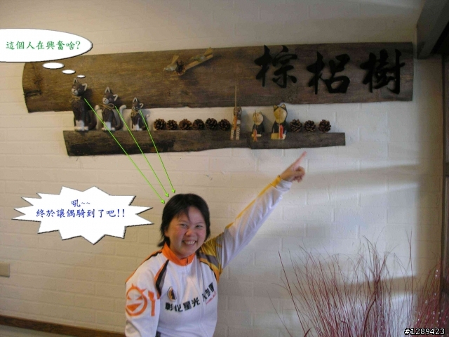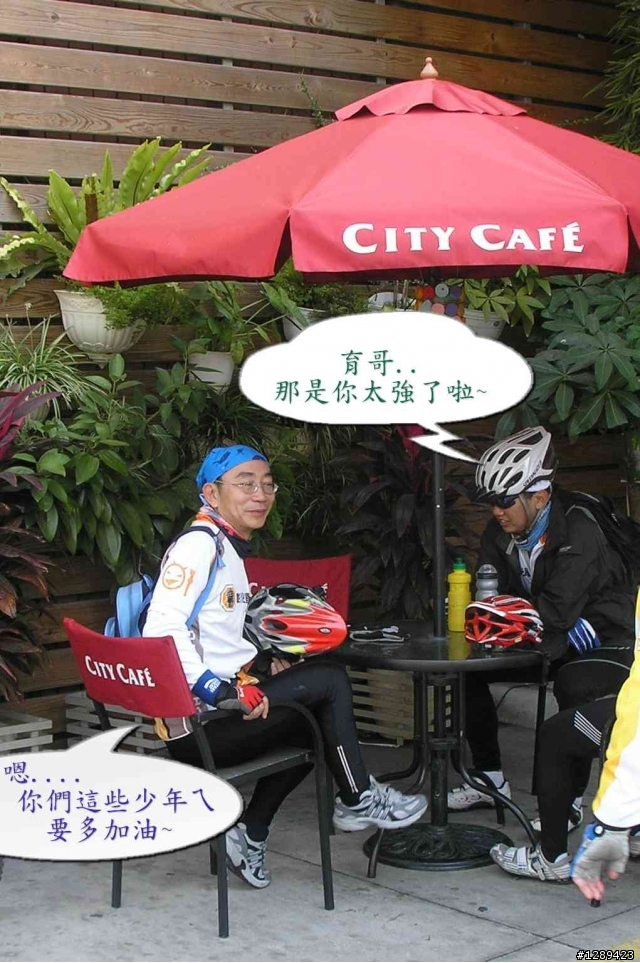 昨晚的夜騎整個人任督2脈無不感覺到氣血通暢感覺天地之氣,運行在胸口之間無不令人感覺神清氣爽就此睡去....老朽醒來7:40分..........所以我趕不上阿~~嗚嗚嗚嗚~~~還有....妳們都騎公路車要我怎追阿~育嫂~妳看他們啦!還有我以為是簡餐店.....原來是棕梠樹早餐店~!!!!!
