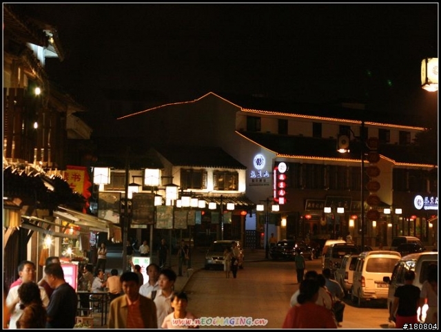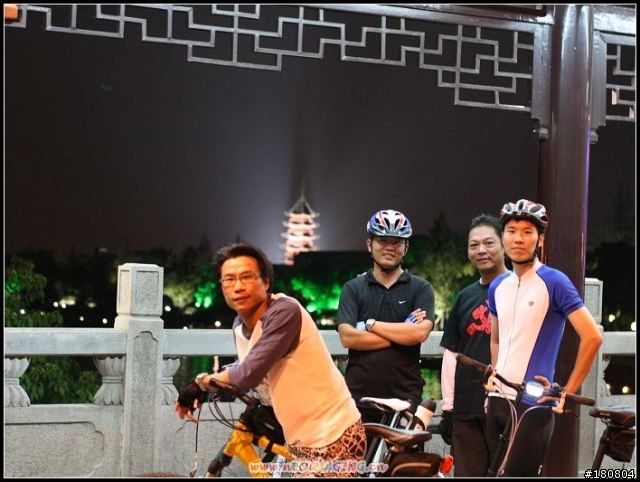 昨天的夜騎其實不錯,涼爽的天氣,美麗的夜景,有夠辣的燒烤及夠冰的啤酒..照例出發前合照一下,最右邊的是新同學Jerry(跟康康同公司,可是康康怎麼還沒下班......)由於人皇出發時吳中在下雨,所以只開車來,沒能參加夜騎....由干將路往北走至蘇大北校區,這裏有很多小攤販,讓我想起讀書住校時,學校旁邊的夜市....有夠懷念的好像大排檔,不過小吃的種類及味道當然沒有台灣好在這裏逛的基本上都是蘇大的學生為主,要把蘇大妹的晚上可以多來逛逛喔....小籠包看起來還不錯,可惜剛吃飽,下次再來囉...在夜市口合影留念一下沿護城河都有類似這樣的碼頭,可以乘船遊河,行程大約7-80分鍾,票價60/人,聽說含餐是80/人,但我沒吃過船上的餐靠蘇大這面旳河邊規劃的不錯,看來是提供學生情侶約會的好地方,...可惜以前我讀書時沒有類似的地方約會不然我想我兒子女兒應該也就像這對抱著的情侶那麼大了吧.....經十全街轉人民路來到人民橋說真的沿岸的燈光佈置的都不錯.....可畏燈火輝煌也來幫小白鳥來個沙龍照吧....新同學的輪子氣壓不夠,正在練習用雞肋牌打氣筒人民橋下(由於沒帶腳架,只好換上光圈較大的定焦鏡,但是廣度就不夠了,唉......大光圈才是王道)護城河南岸都是像這種路,也是我第一次摔車的地方.....河邊的亭院樓櫚,在燈光下粉飾下,與白天的景象相比,另有一番風味到閶胥路後往北走,其實這一段也可以走河邊公園小道,只是人皇己經在山塘街急Call大家吃燒烤了,只好趕點路一路往北經過石路商業區,來到山塘街入口進來後都是茶樓餐館....還有工藝品店這是山塘街老街道,由於太晚了,店家大部份己關門眺望對岸的城門,此城是由春秋末期吳國名相"吳子胥"所建在山塘街裏找到一家生意頗好的燒烤店,這時己跟人皇及鐵馬的二位技師,還有小陳也己趕來會合這裏是山塘街的石碑貢丸也特地趕來吃燒烤,算他有良心雞中翅烤得還不錯......大家晚上可以帶一家老小或女朋友來逛山塘街夜景,順便吃吃燒烤報告完畢,....由於夜拍經驗不足,照片不夠精美,下次會再提昇夜拍技巧,請大家包涵囉
