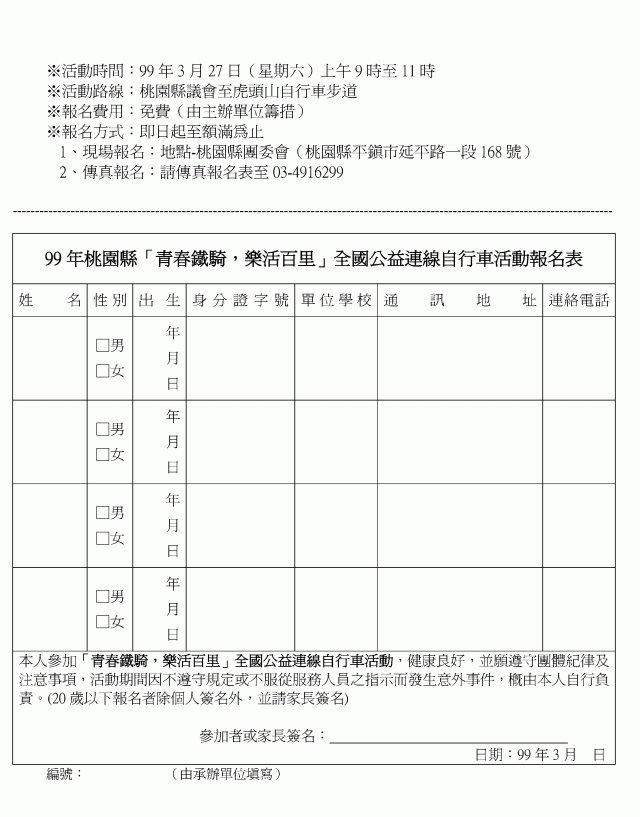 活動報名表如下