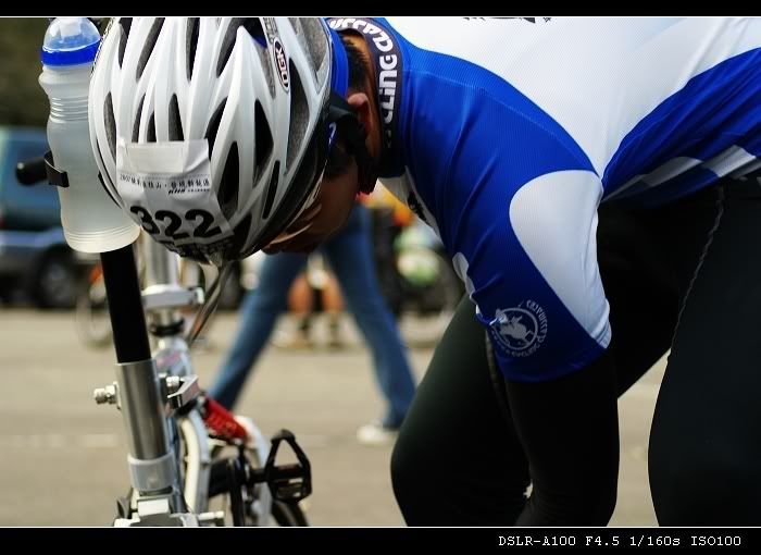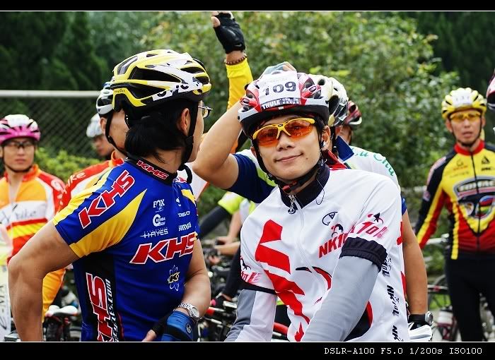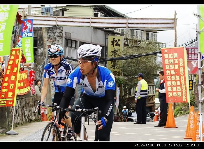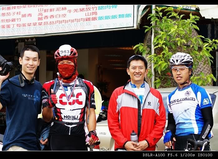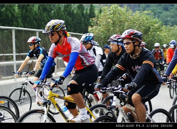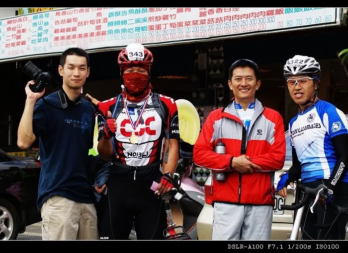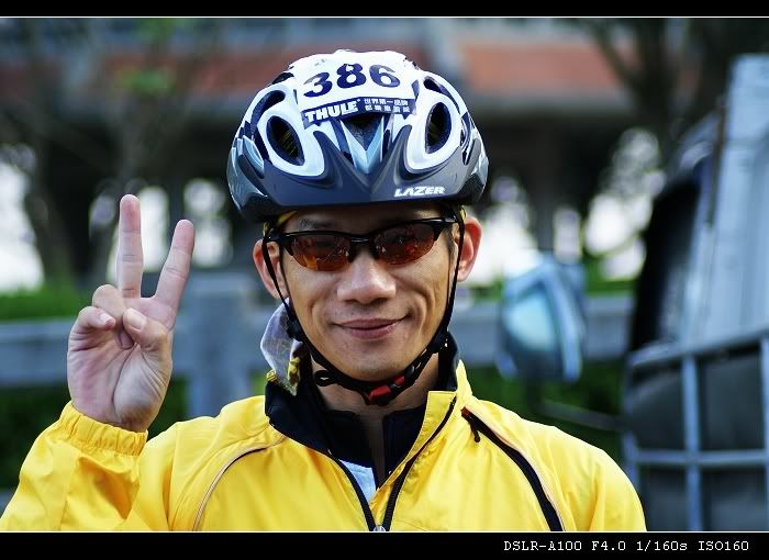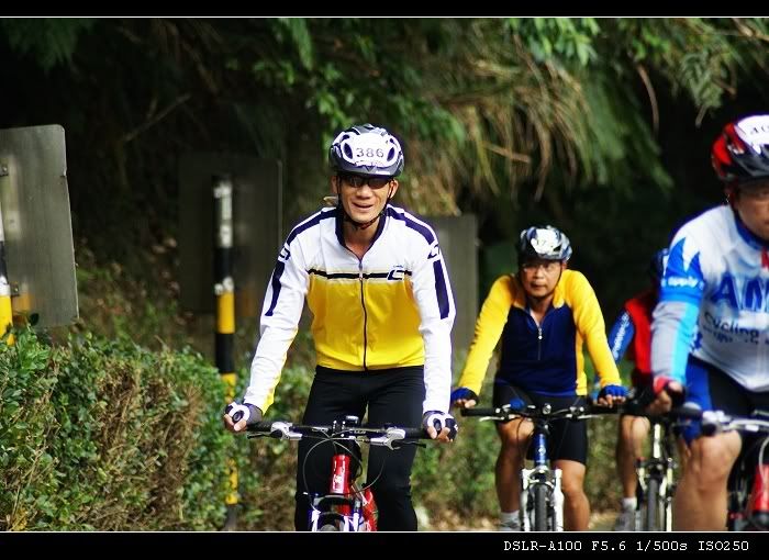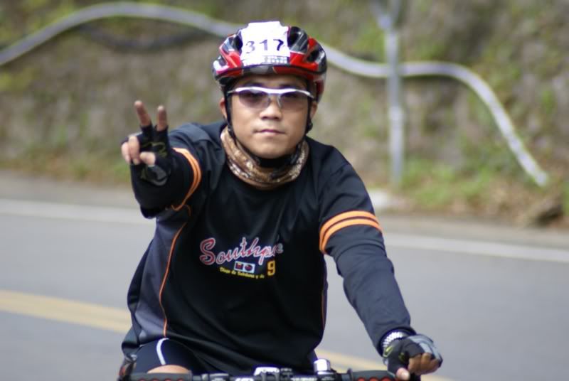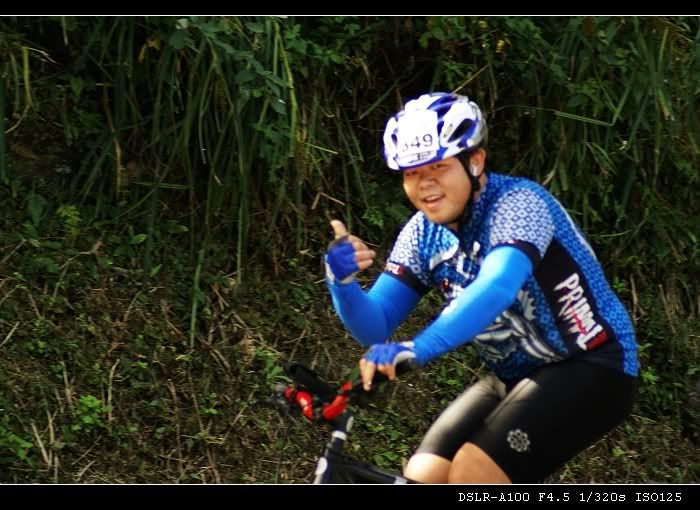 以我車齡不到一年,總里程不到四千來說...雖然賽前已經大約騎過相同的路線!但這種人多(約500以上)的挑戰賽能順利完賽就很偷笑了!因為沒用心跳表的習慣,不能了解自己的狀態~在爬完神牛坡時都還讓自己保持超前的狀態!但一爬完神牛坡後發現,怎麼換成我一直被人超前原來這就是暴掉的下場 果不出其然!雖然一開始盡量保持在第一集團的後方!但到慈湖附近我的右腳已經有快抽筋現像為了能順利騎完還有40多公里的路程,只好放慢踩踏盡量保持輕鬆~但也開始擔心最後那七公里的坡會不會更嚴重!過完羅浮橋,醬油追了上來!但說真的我沒力了~只好放他一條生路在後半段的路程,大概為了不重踩長時間保持高回轉速的後果就是~右髖骨附近很不舒服,只好握下把盡量控制疼痛!在轉進上巴陵後開始看到很多車友抽筋停下來休息,雖然自己抽筋的狀況沒有更嚴重...但那最後的七公里坡,我的雙腳是沒知覺的~最後以分組排名 總排名 選手號碼 姓名 成績1 82 333 黃崇哲 02:44:21.082 86 279 陳志忠 02:47:12.603 117 320 莊英棠 02:55:32.434 133 319 詹盛樺 03:02:10.185 141 341 陳孟彥 03:05:21.326 142 315 嚴正機 03:05:21.907 144 336 劉正祥 03:06:32.838 163 331 楊佳鑫 03:19:19.899 167 308 林信源 03:16:39.6710 168 275 廖國志 03:16:48.0711 170 322 黃旭權 03:17:21.87送上大家的照片104的阿仁104的阿偉我~阿權醬油還是老樣子湯馬矢因故不能參賽的阿翔忘了記...志銘小毛