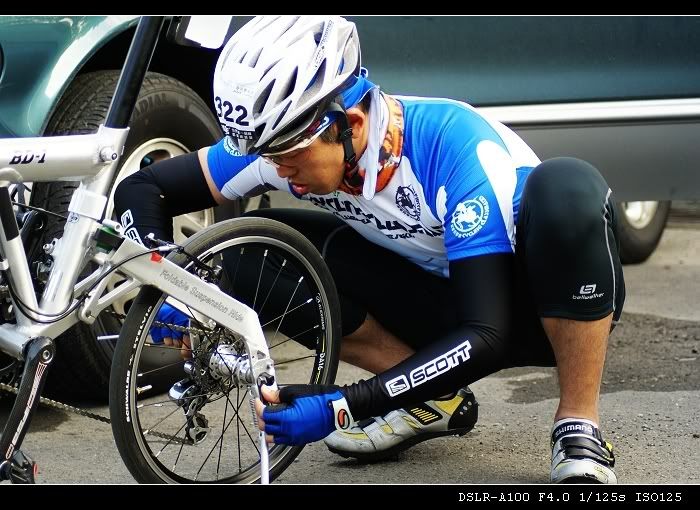 既然燙馬屎與阿權都已經把自己騎拉拉山的心得與遊記給PO上來了...最"膏謂"(台語)的我....當然也要來拉低賽一下囉....只是...車齡三個月...總里程數因為拉拉山而破千....這樣的肉腳也上了拉拉山...我想大家一定很不甘心吧(沾醬油的名言:連小毛都上過拉拉山了...那我一定OK)...比賽前一天...我與燙馬屎討論著有關比賽需要準備的東西...水...Power in...車子輕量化...穿長車衣還是短的...反正亂七八糟...什麼都講....不過自己心裡最毛的...不是最後七公里的長坡...而是自己從未騎過的前段路段(石門水庫~羅浮)...後來想想...反正就自己慢慢配速...只要到羅浮....後面自己有騎過...就會比較安心了....比賽當天....一早7:05到石門水庫...大家都已經到了...建鈞忙著幫大家照相...我也趕緊拉筋暖身....其實我最怕就是抽筋與左膝蓋的傷勢....所以能熱多少...就算多少...出發後...我與阿仁一直維持一定的速度....而且盡量拉迴轉速加速熱身...結果才剛好要熱開...馬上進入神牛坡...也好在有神牛坡....更讓我的熱身完全熱開....一下子就把速度給催上來...接下便是往慈湖方向....看到喬哥與建鈞在拍照...原先想起身抽車的....結果因為自己看到的時候已經有點來不及了....所以只好作罷....在往三民萊爾富之前....不聽話的膀胱突然很想找廁所...結果只好趕緊衝到一個"蜂蜜不純砍頭"的名產店...把身上多餘的水份給清一清...才出來不久...燙馬屎就出現在我左邊...毛:「老哥..你不是說要慢慢騎嗎...幹嘛騎那麼快...」燙:「還慢慢騎咧...」就這樣...我一直想咬他...結果在剛剛進到三民萊爾富...就快把自己給搞爆....接下來...進羅浮...看一下時間...蝦米...我才騎1小時25分就到羅浮了喔...一個心安...也是一個不小心....左腳小腿因為拉迴轉速而微微抽筋...這是個警訊....看來接下來我要慢慢龜了...之後...我想我就不用多說了....11:18...騎到了下巴陵...發現一個更慘絕人寰的事...我的右腳小腿也抽筋了....唯一幸運的是左腳膝蓋一直保持良好的狀況...上次試騎...55分征服七公里大魔王...看看這次可不可以更好一點...只是...人算不如天算...自己的體力似乎已經所剩無幾...才剛剛過收費站...發現前變已經用最小盤...後變用最大盤慢慢龜的情況惡化....原因是自己已經完全沒有體力拉迴轉速....心跳一下就爆...趕緊將Power in吞下...發現好甜...搞的我水狂喝....慘...這下子想在12:00以前完賽可能沒機會了...結果....意志力戰勝七公里的陡坡...只是時間...唉....花了74分鐘才把七公里征服...不過...我完賽了耶...總花費時間 04:26:06.09..分組50名..登山車組160名..總排名340名..名次對我這樣的新手來說....已經不重要了....至少...我騎完了....感謝南崁幫的車友協助...你們真的是最好的夥伴...
