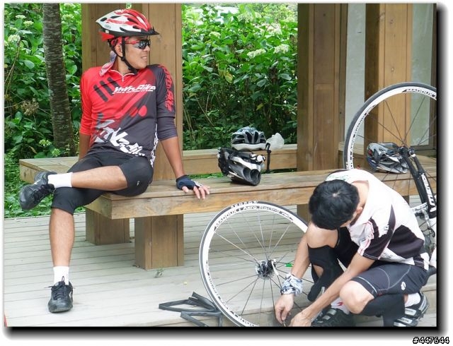 今早參加小平鎮晨騎團雖然到終點準備回程時遇到了下雨但是沿路的跛線都是儘量避開車多的路段大都走在鄉間小路整個行程空氣都不錯,騎起也很舒服路線也有經過三處的爬坡路段也不錯可以流流汗整個行程真的非常適合晨騎的在終點山泉水還有小平鎮晨騎團車友提供的提神咖啡實在足感心在此特別感謝阿冰(因該沒稱呼錯吧!)一大早來小七帶我們到集合點與大家會合路途上還享有小平鎮的多位大老們押壓車及路口指揮的VIP服務也是足感心A再一次感謝小平鎮晨騎團的各位伙伴們未來假日約騎也要將星期日早上定為晨騎日要和小平鎮晨騎的車友們一起去呼吸早晨的新鮮空氣PS目前系統無法上傳圖檔!待晚點再將圖檔上傳隊伍在陽光山林社區大門口休息中還是年輕人有體力!小謝和其他晨騎團的眾多勇腳們都在陽光山林爬兩趟又是一位慈父,我們家的阿宏又有伴帶小孩出遊了今天假日去參加晨騎的有大媽徐嫂、二媽謝嫂、二媽的老公謝伯、球哥、球嫂、明哥、明嫂、阿冷(目前內壢夜騎團顉騎、)勞詩來斯、小謝、還有妮妮團的金順,小平鎮的車友我只認識阿凱、瘋猴子、阿冰、阿火其他不認識的車友下次去我會想辦法認得各位的三位用心在泡咖啡的車友大大你們辛苦了!這位帥哥今天最辛苦了!要做支援車又要幫忙指揮交通又要拍照還要泡咖啡!足感心A