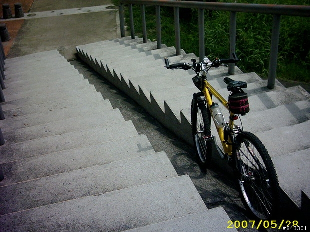 話說昨晚排隊加完油後去車店LDS老板說我要的坐墊來了昨晚又聊得太晚了沒來的及換今天一早起床二話不說立刻換上新坐墊既然換了一定要試試嘛,先來看一下總里程數6366好啦!出發吧!先往台1線走......到了埔心看到這個牌子習慣性的就給它右轉了走著走著又看到這些指標,我想往騎自行車應該也只能往114號道直走吧!這些箭頭都是往前直走,那就直走吧!走著走著就到了陶瓷博物館了!博物館正對面這條路沒走過,不知道會走到那裏?走沒多久就轉進自行車道了這車道雖然直,不過好像有點小氣,太窄了吧老黃不是中暑倒地啦!是旁邊都沒東西可以靠只好先躺一下吧怎麼可能才進入車道0.5公里就倒地不起這車道真的是小氣,旁邊草皮那麼多真有點浪費到了柑園橋啦!看看跑幾公里了!39多,屁股好像還不會痛過了柑園橋的自行車道就大方多了騎公路車的看到這種車道應該會尾椎翹起來衝吧這個設計者一定不騎自行車難下又難上這是北部有名的西盛機場(搖控飛機專用)這龍頭還真閒!端午節不是快到了嗎?怎沒裝身體去操練一下(裝上船身一下水不沉才怪)終於走出自行車道要進市區了在忠孝橋上可看到台北市的兩棟最高的樓到了朋友店裏看到昔日與老黃四處奔馳的戰友一台長蜘蛛網 一台兩輪都沒氣了 這些人真是沒我督促都變懶了不過最重要的是看到這位老朋友心情頓時開朗不過今天不是來喝酒的還是早點回家吧!真怕遇到午後雷陣雨由台北往板橋再到浮州橋走原路回家吧!這是土城段的自行車道這是樹林段的回程一路大逆風不說,這太陽公公也太賞臉了吧!就一路陪我回家到了家再看看總里程這是今天跑的里程數.比上星期東眼山多4公里總共騎乘時間最後總結一下新坐墊其實坐久了屁股還是會痛,一定要騎一段路後休息個幾分鐘,休息是為了走更遠的路報告完畢 謝謝收看