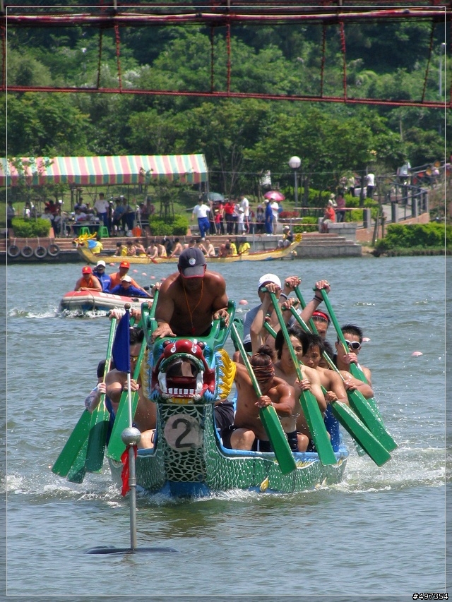 殘念?人家楊梅來的,可是一路過關斬將!!!是在『大池』,不是『明池』;明池面積太小了,稍不留神就龍困淺灘......^.*楊梅龍舟隊很好辨認,因為隊中有一個老外。小楊梅單車隊也很好認,不是車衣,是seven...^.*