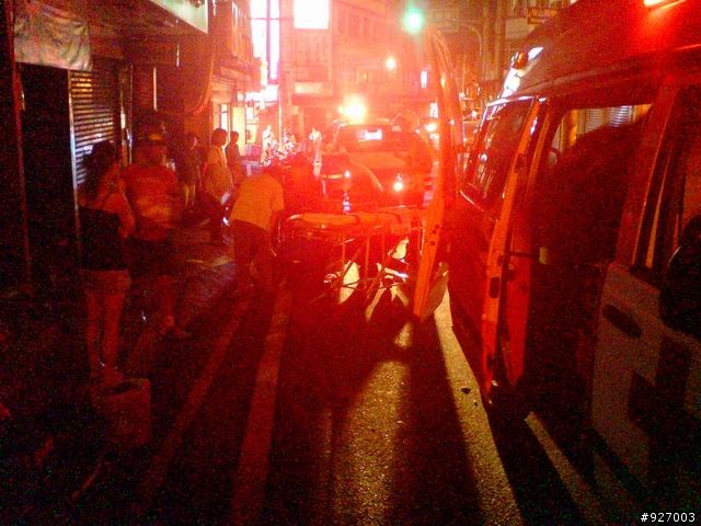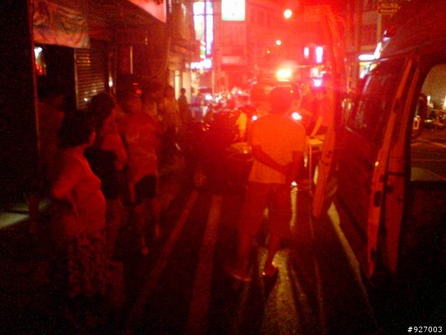 ...我在慢1秒~~被撞的就是我!!!大家愛闖紅燈的!!!真的要注意啦!!相片是剛才22:30在街上發生的摩托車飆很快對撞事件!!一個腳很像斷了!!一個滿身血(也吐了一地血)!!重點是我經過那個路口1秒後就發生了........聽路人說剛才才發生車禍才剛處理玩馬上又撞一次!!這兩天一堆路燈沒亮!!大家夜騎也要小心阿!!