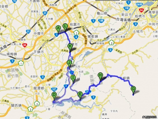 路線:內壢>永豐路>八德市公所>泉僑中學>石門壩頂>環湖道路>三民小7>台七乙線>三峽>大板根森林遊樂區>