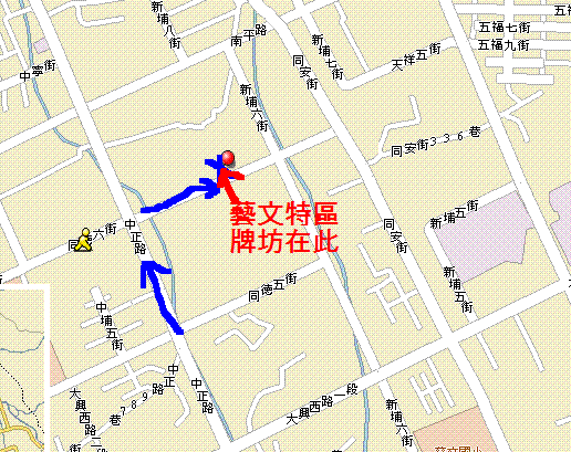 Hercules.U wrote:請看第一篇, 有地圖...(恕刪) 地圖不見了啦 我剛剛有去看宗大 補一下吧簡單說一下集合點從桃園夜市的方向走中正路往南崁方向走到同德六街右轉 左手邊就可以看到一個廣場廣場上有個藝文特區的牌坊集合時看到人 出個聲問一下就ok啦