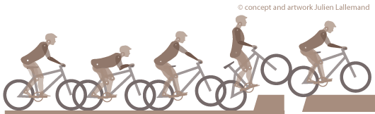 • 撞擊時收縮雙腿讓後輪有彈性越過障礙並且向前推你的單車一把。這個後輪撞擊應該能把你的身體歸位到平穩的姿勢。