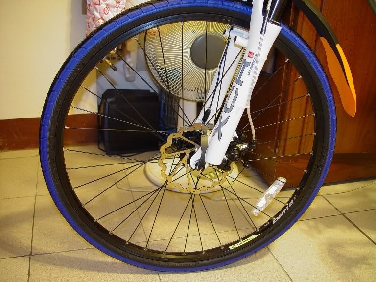 27.更換的輪組,配上1.5的平胎..,除了想跑更輕鬆之外,也是為了那圈的藍色