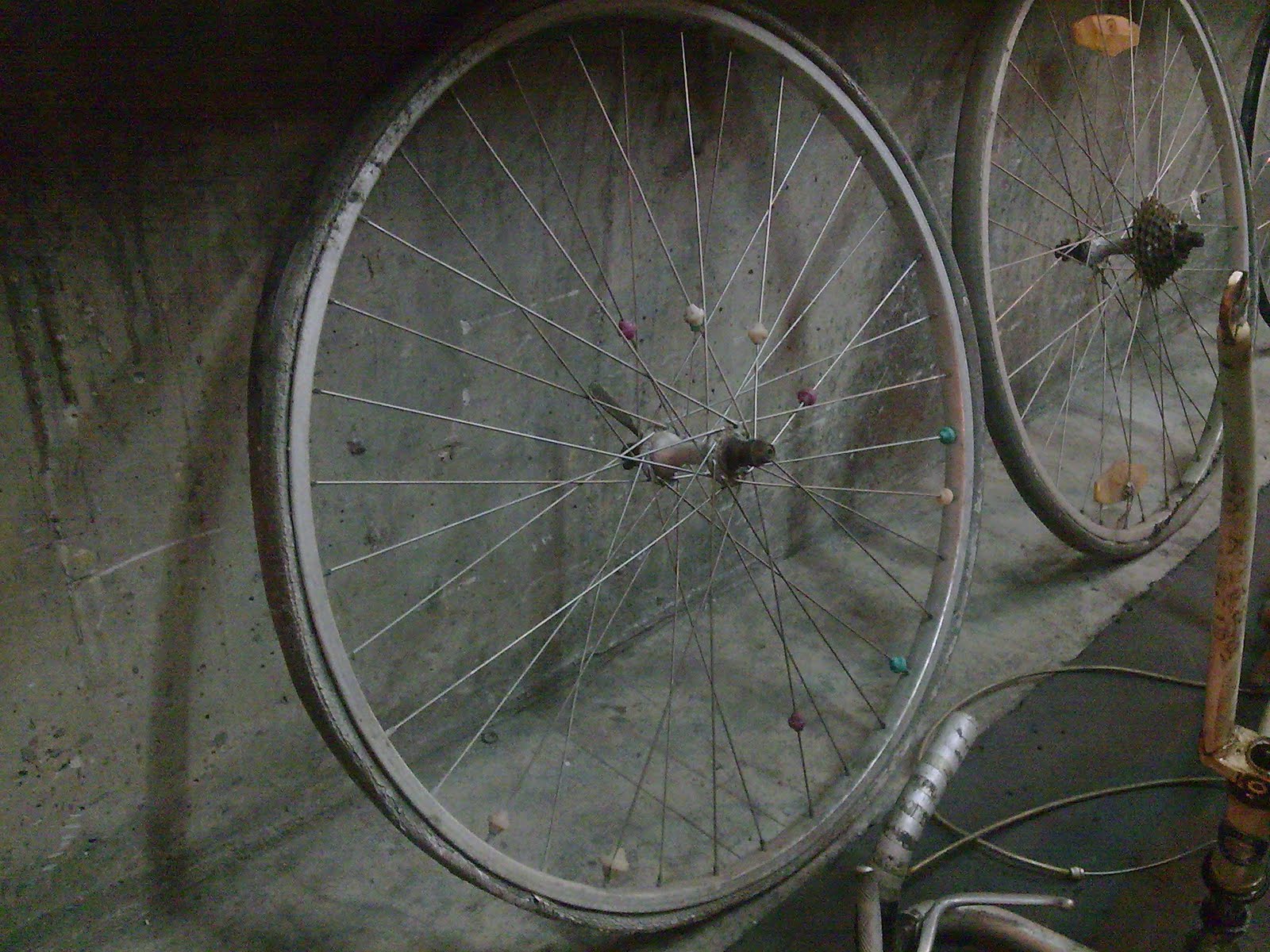 原廠的輪組 , 看看框架是ARAYA 27 1/4 的 , 等級不錯 , 狀況也還不錯 , 也許可以重編再利用 ! 這樣 , 只要外胎可以搞定 , 就不用擔心夾器的問題了 !!
