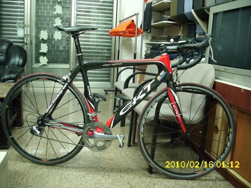 這是我的車CKT 369.便宜又大碗,誰說便宜沒好貨,CKT就是好貨一個。壓縮車架,後輪傳動較直接,長程騎乘或俱樂部聯賽都不錯!不管你是視覺性或是注重性能的車手,相信CKT均能滿足你的需求。全車MIT的廠牌及零件。輪組滾動效能與其他牌一級輪組相較不差。重點價格是其他大牌的一級戰駒還要便宜三成以上。