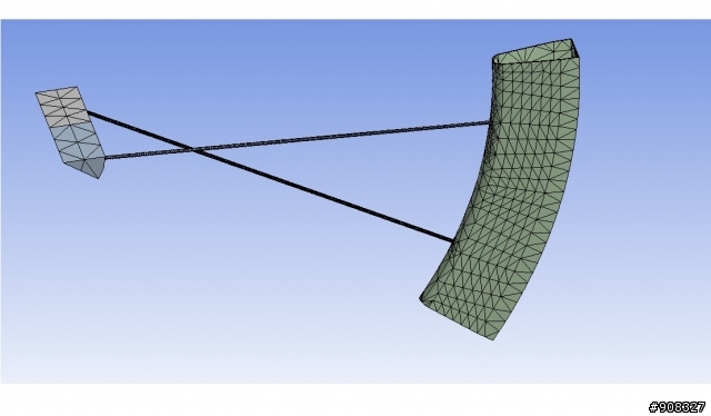 一開始 我想的太單純了 總力合一樣就解決了沒想到 框不是絕對剛體 所以 他們的結構行為也不一樣參考一下吧---------------------------------------------這個模型只是方便比較而已我用5公分的框 簡單的形狀來方便分析材料ansys內建的鋁合金2.0鋼絲 材料 ansys 內建的結構剛花鼓直接 fix support20根鋼絲 拉力 1000N---------------------------mesh鋼絲張力 1000N應力分布型變16根鋼絲 拉力 1250N---------------------------mesh鋼絲張力 1250N應力分布型變