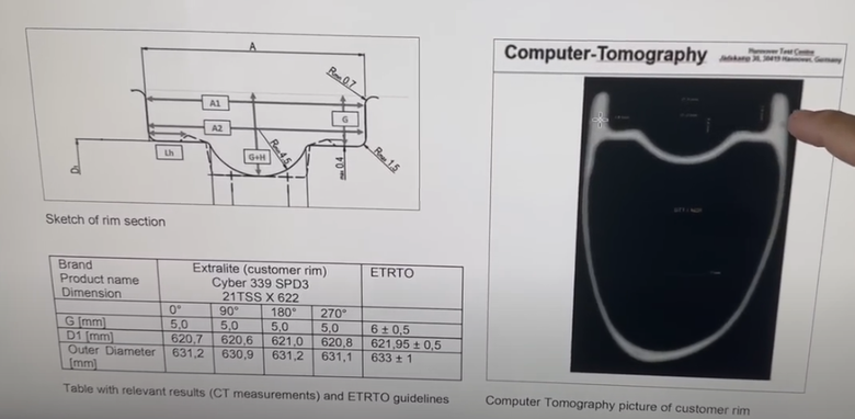 大陸輪胎請該網紅將他那組輪胎及框寄回給大陸輪胎,大陸輪胎經檢測後發現他所購買的那組框,並未符合ETRTO的規範,在歐洲銷售框及胎,都要符合ETRTO的規範值才可進行銷售,大陸輪胎也將他所購買的胎,裝在另一組框上,測試不同的胎壓,最終加壓至9 bar才脫落。