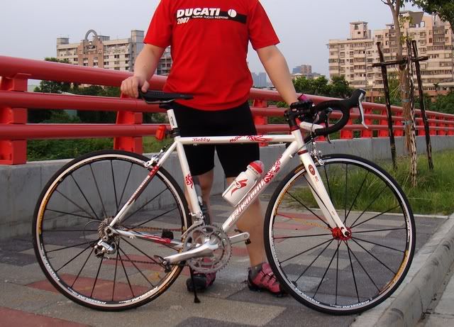 阿哈哈哈!!!我的卡鞋也是這雙喔~~不過我是在清泉崗附近的太極殿跟hank單車買的~~~不用到大甲~不過我還沒穿過~~懶的把卡踏換上去(沒工具)這樣~~看了有點娘耶><....我在你家附近而已喔有空一起組成娘炮軍團.....不過他們的坐墊更讚!!!!坐骨會痛就是了!!