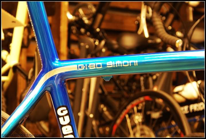 The Gibo Simoni replica 2009 frame employs a new Dedacciai custom carbon tubeset and is a prototype of a frame that will become part of the 2010 range of the storied house of Guerciotti.