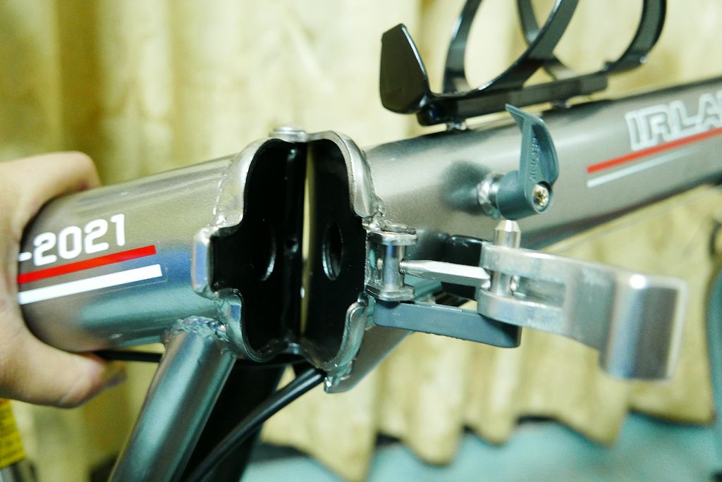 前摺疊盒內部構造 龍頭拉直後把快拆 鉤 推 扳上 就可以固定了 不用在轉螺帽 調鬆緊度了