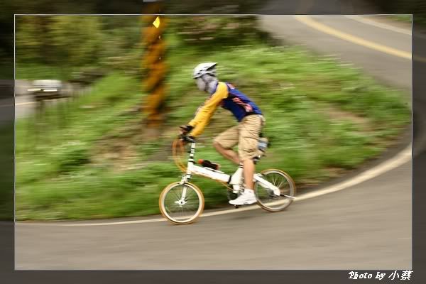 之前騎登山車上東眼山,回程下坡,為追前面車,時速已衝到近60k,衝的太忘我,突然遇到另一方向大髮夾彎,竟忘記把內側腳踏升起,就這樣腳踏與地面摩擦,後輪跟著打滑,還好即時拉回,沒繼續打滑下去,否則以當時速度,即使沒滑出對面山谷,右半身也必定嚴重掛彩。因此千萬不要去嘗試這種白癡行為,小折不行,登山車也一樣不行。另外,腳踏最好是金屬材質,否折塑膠摺疊,遇這狀況,輕則損毀,重則人掛彩。