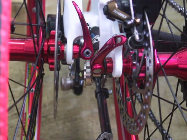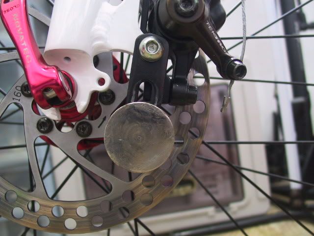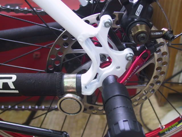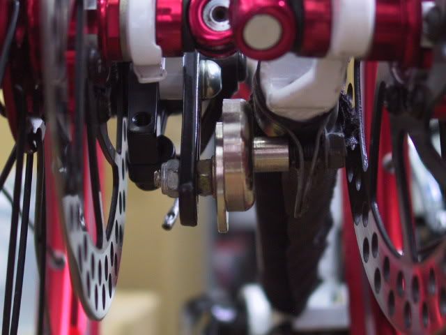 先前說改碟煞之後就沒辦法再依原設計方式把磁鐵裝回去經過這些時間的尋找發現解決方式先PO圖吧前叉後下管磁鐵固定處摺疊後一全車後拍摺疊後二花鼓處近拍摺疊後二磁鐵處近拍前前後後搞了很久不是太靠近會前快拆跟後叉相撞不然就是兩隻快拆卡在一起~~這是目前的版本還有精進的空間心裡還有一些構想想把它搞到更好~~