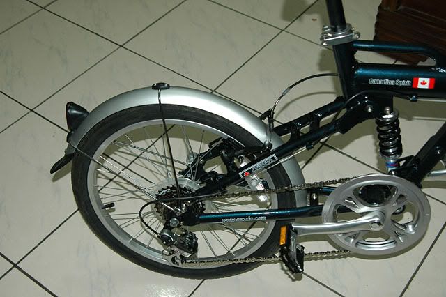 1 煞車組真的很爛,我已經換掉(shimano煞把和AVID 夾具),不過我發現我換的26吋煞車用具,在車子折疊之後,後輪會被煞住,不過這對我沒什關係