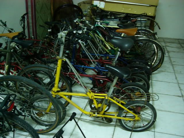 司機大哥,這就是我最近買到的黑小貂,是在我家附近的老西裝店,鋼圈跟鋼絲都鏽到看不到一絲光亮處,心想要不要購買阿,坳了一個晚上!拿出最我最厲害的殺手鑑,老闆我還是個窮大學生沒有工作,想說買來上課代步....回到家還被唸了一下,買了一樣的車子還生鏽成這樣子....@#%&^$(老人家不懂)差一跟斜桿可是差很多的,最少我心情會好一點,小弟沒有要批評無斜桿的人,不要誤會個人也有一台無斜桿,不搖頭好騎唷!
