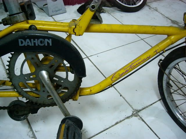 DAHON III 小貂 LOGO 很想重新烤漆,礙於窮學生...而且司機大哥說原漆才好~~猶豫