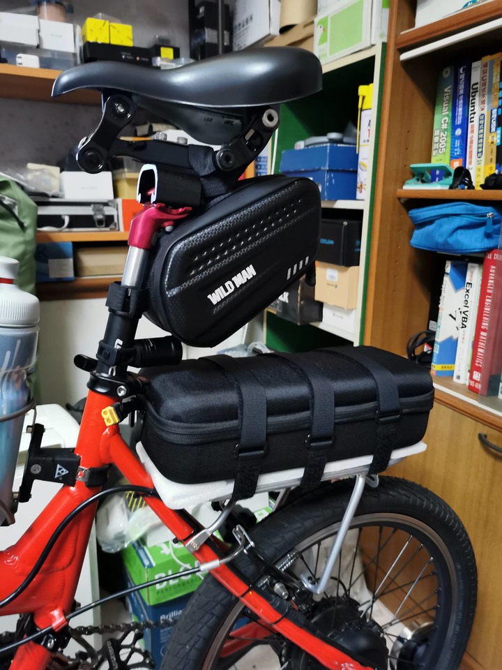 擴充續航的電池包:結論是2倍的電量,但卻是更便宜的價格(含運只要3500元台幣)。1. 電池採用滑板車專用的電池組18.2Ah(而原本的電瓶是9Ah),需要的尺寸先確定好,從淘寶買。2. 再來是找可以放電池的後包,原本希望從自行車專用的後貨包來找,但是完全失敗! 不是過大就是醜...,突然發現原來遊戲機的包也是不錯的選擇,從任天堂的Switch,慢慢發現到Steam Deck,哇!真是完全合身與理想,露天有賣(含小7貨到付款380元)。東西到貨後,接下來就是怎麼把電池擺進去,二話不說,立刻進行合身切割(寬度剛好,長度稍微切一下)底層再鋪墊一片原本包裝電池用的泡綿防撞擊,其實上蓋我也給他多墊了一片。裝進去後,完美合身。接下來,我是買綁物帶(小北百貨35元)把電池包固定到車後架上面。電源線的部分,電池出廠給的長度有限(我請廠商配XT60接頭),這部分之後我會給他接長一點。3. 控制器端的電源接頭,那就直接並聯出來吧!控制器本體接頭外露,不會太明顯,還可以接受。到此,擴充電池的部分大致就OK啦!平時60公里左右(含爬坡1000公尺內)帶9Ah電瓶, 60公里以上~120公里就使用電池包,120公里以上就兩個都帶囉!