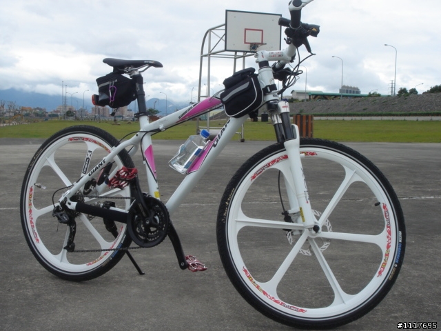 白色視覺系大變身~白色龍頭~白色握把~白色牛角~白色輪框~~唯一的敗點...我買的白色座管不能裝....捷安特沒事出個30.9MM的特殊尺寸...不能裝!好失望!!如果誰知道有30.9MM的白色座管請告訴我~~