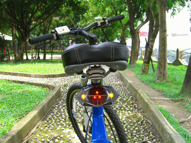 覺得應該做成箭頭式的閃燈,畢竟如同前面幾位車友所言,大部分的自行車都沒有,突然有一台有指示左右的,其實對機車、汽車用路人而言,那不是他會注意的「目標範圍」。所以標誌可能要一眼立刻知道意思,才能達到效果.....而且很多台客的摩托車後燈,為了強化炫麗效果,閃爍的方式都會把左右指示納入亂閃一通,顏色更是五花八門,對於馬路上的用路人而言,其實對燈號可能早就已經麻痺了....