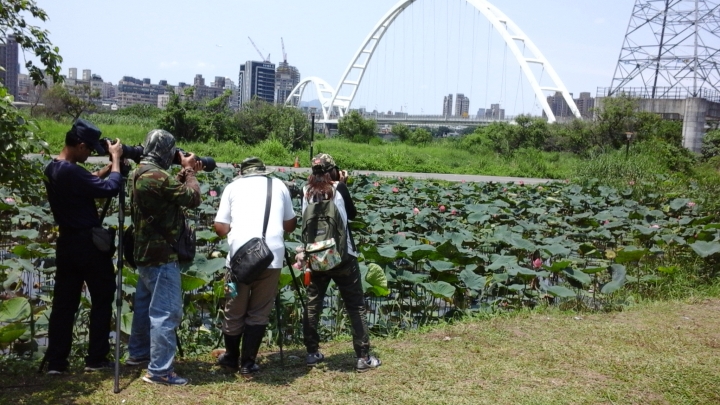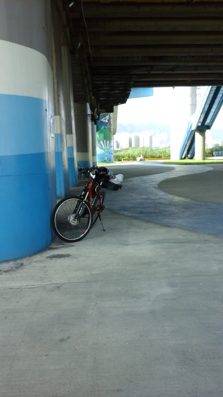 早上從河濱公園中和區華中橋騎到新店陽光公園,大太陽下有工人在刷鐵欄杆油漆,維護河濱公園的工作真辛苦啊