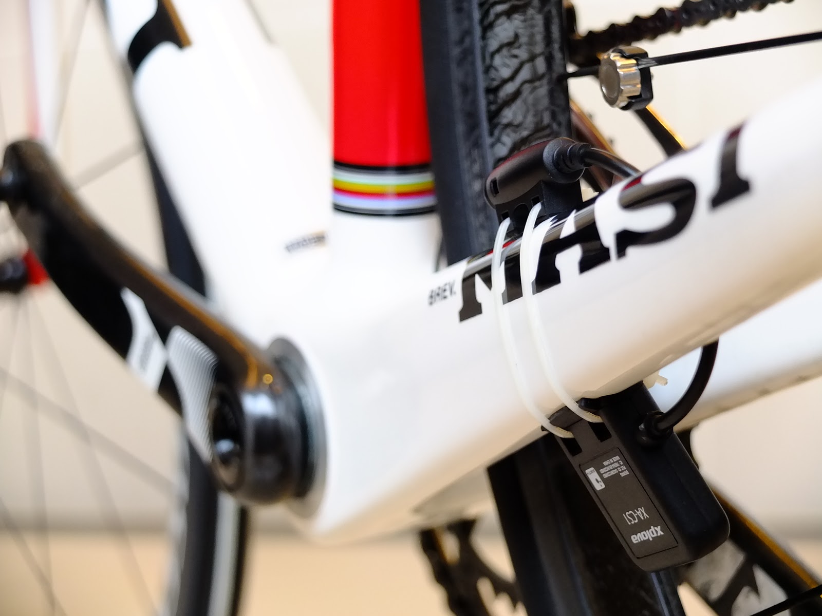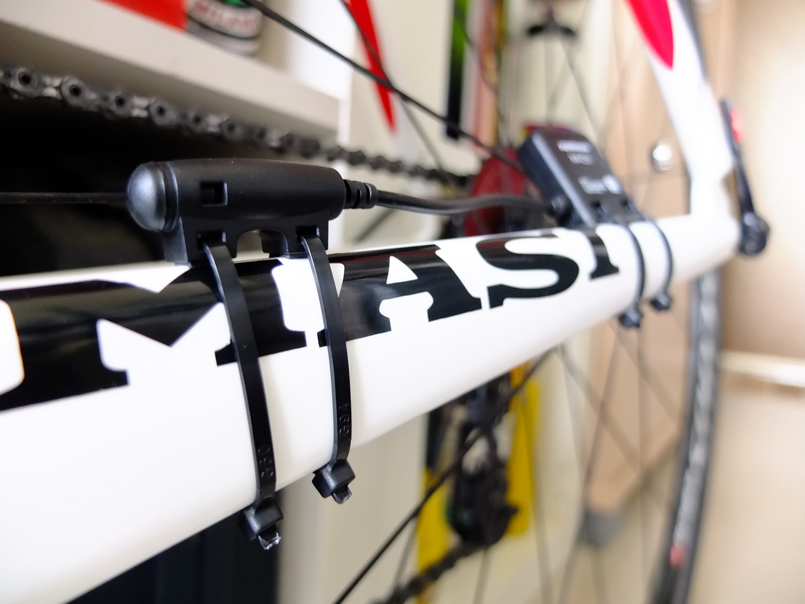 特寫說明:上面感應器是迴轉(感應曲柄磁鐵);下方是速度感應器,往內摺更接近鋼絲上的磁鐵