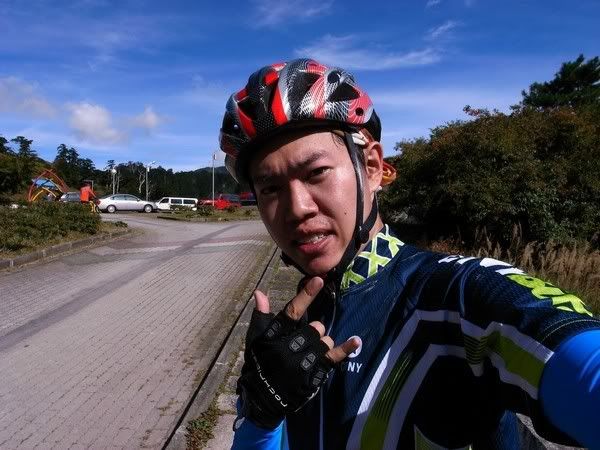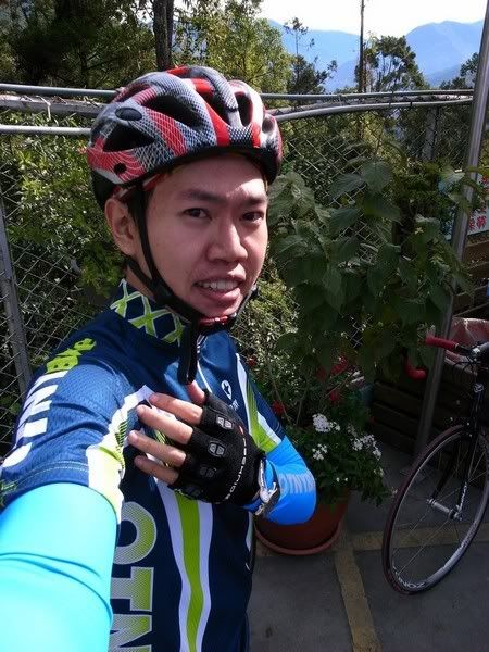 這一段,剛騎了不到500公尺,停了下來,空氣稀薄,即便節奏抓的到,氣還是吸不夠,實在好喘。坡度又好大。果真「路都在天上」,大叔所言不假。只好300m休息1分鐘,慢慢龜上去。