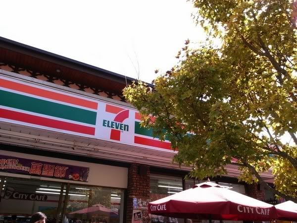 外面這顆楓樹,葉子已經開始黃了。可能下週寒流來它就要變紅囉。還真的是一家滿漂亮的7-11。