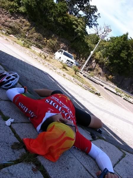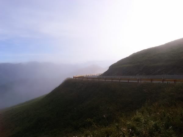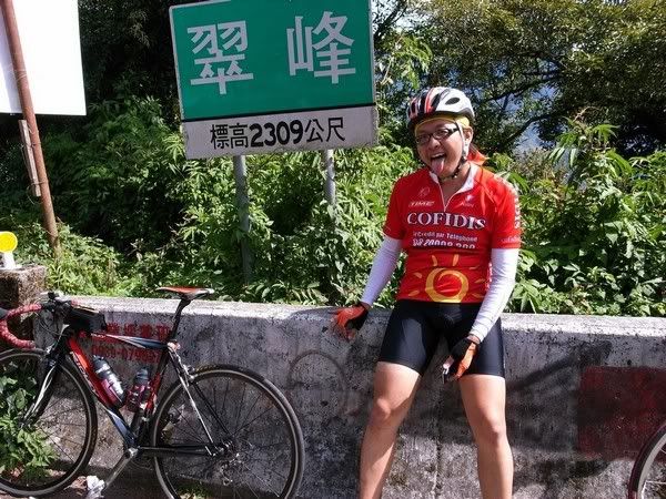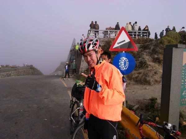 爬坡地獄第18層來了。有個大叔正要下山,他告訴我們,前面的路都在天上。唉...到了這裡,你嚇唬我是沒用的。就算被嚇到我還是要上。但上從地上爬起來要騎的時候,覺得...哇靠,頭好暈啊。好像有點高山症....