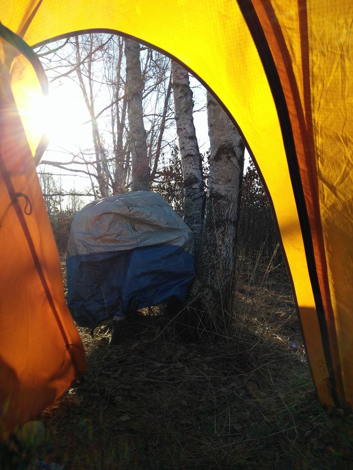看吧,隨便找個林地扎營環境就相當舒服,但晚上睡覺時依舊裹在睡袋裡完全不敢動彈,因為一動就會碰到沒有覆蓋到體溫的地方,冷得自己又醒來,等稍微暖一點之後再沉沉睡去,周而復始,每天也只想著未來睡袋還得要再升級才行。