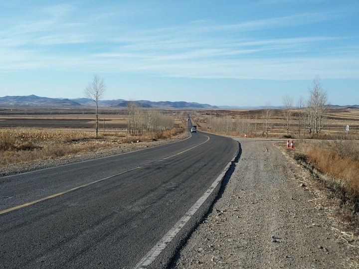 從哈爾濱到內蒙古的海拉爾,中間可以算是較大型的城市分別為大慶市及齊齊哈爾,過了這兩個點,中間就是極小的村落與小鎮,而且中間都會有段距離,所以要思考帶什麼糧食上路,以及哪裡可以吃個中飯晚餐,成了時間與腳程的競賽。幸運的是中間都還能夠找到小村小鎮內的飯館,再不濟也有個便利店能買個麵包餅乾,所以沒吃上太多頓泡麵。