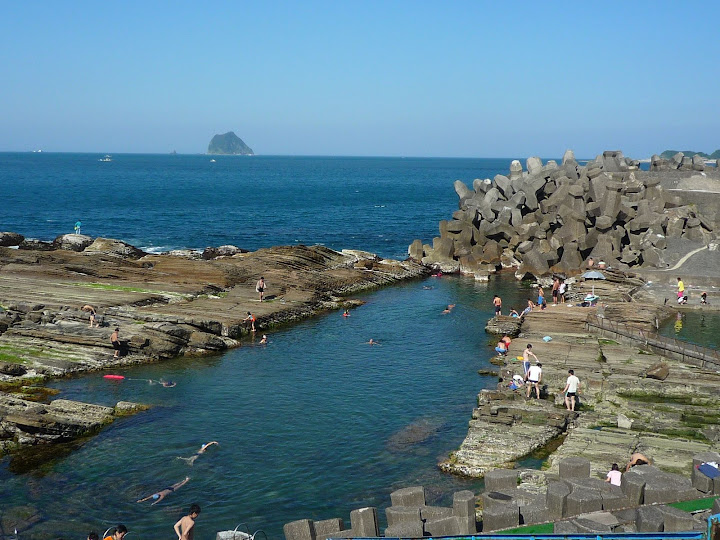 補充能量後,往外木山前進,聽說那邊有個很美麗的海灣,在一段緩上坡後,終於到了外木山魚港和海灣,加上天氣好,景色一整個很美麗