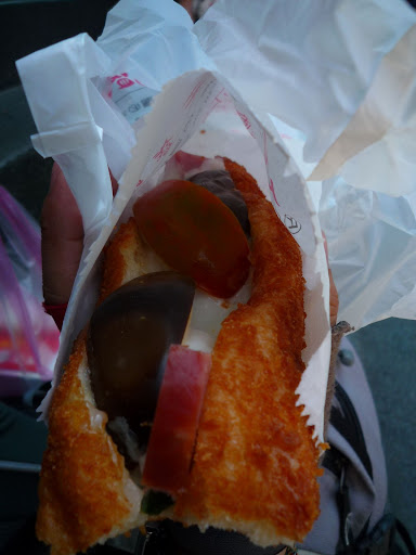 ,再來個營養三明治當午餐囉!口感像咖哩麵包,不錯吃,但美奶滋太多些