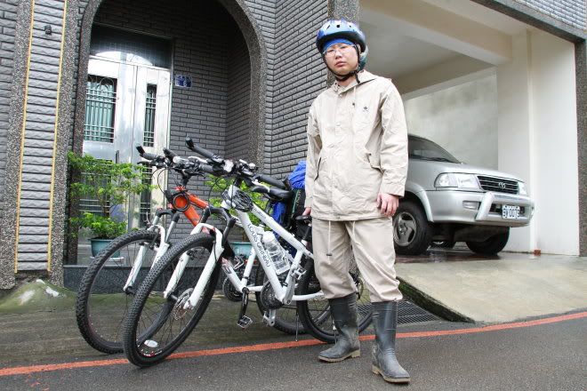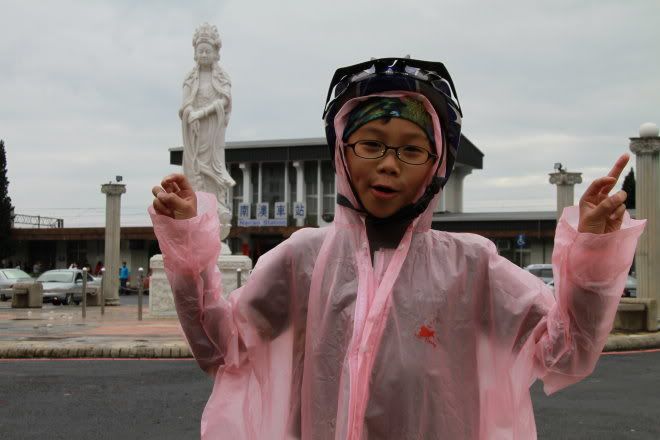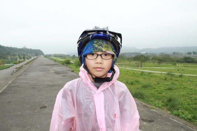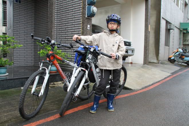 下坡時我的車煞不住了, 還好穿雨鞋, 就用腳煞! 廷曄還問我是不是腳在癢. 雨天騎車確實危險, 要加倍小心!