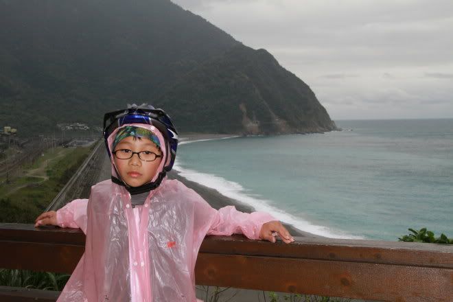 小朋友走蘇花公路真的千萬要小心! 還好廷曄的雨鞋夠厚, 只是腳板破了點皮.