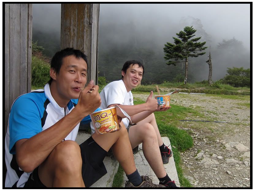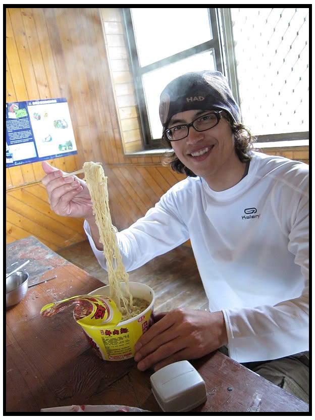 拍無照後想必大家都餓壞了,所以我用最快的速度衝回山莊為大家煮熱水沖泡麵,